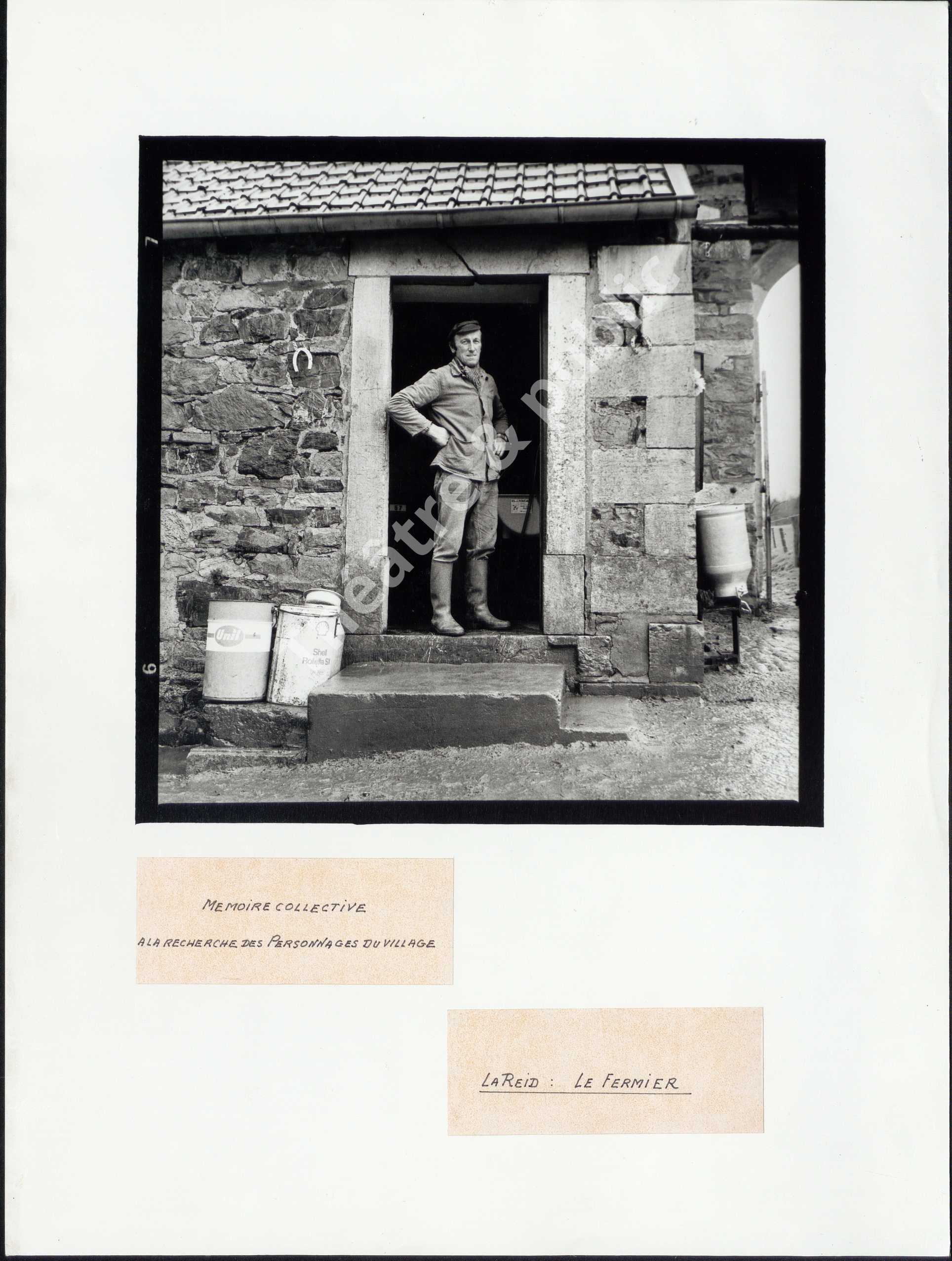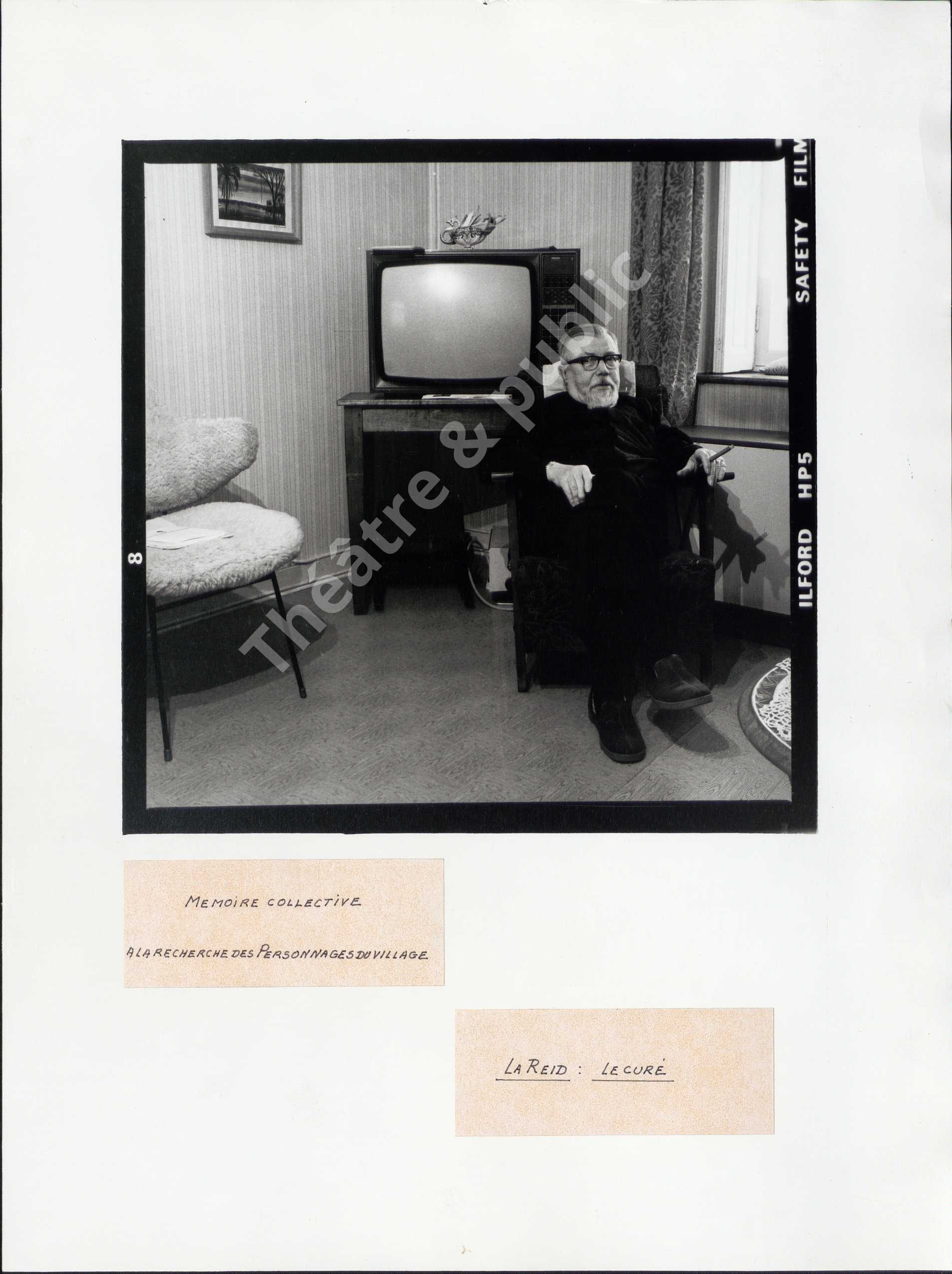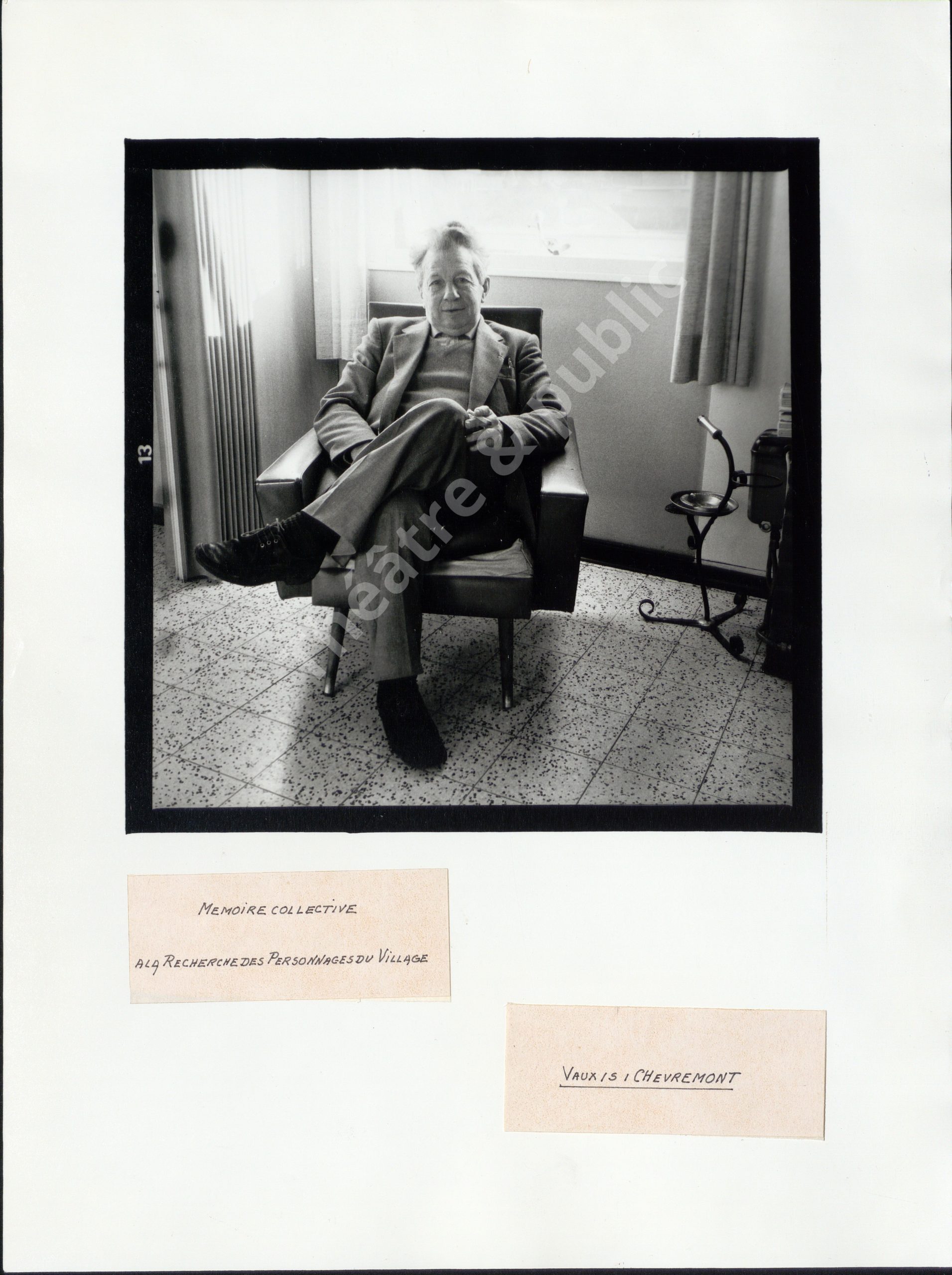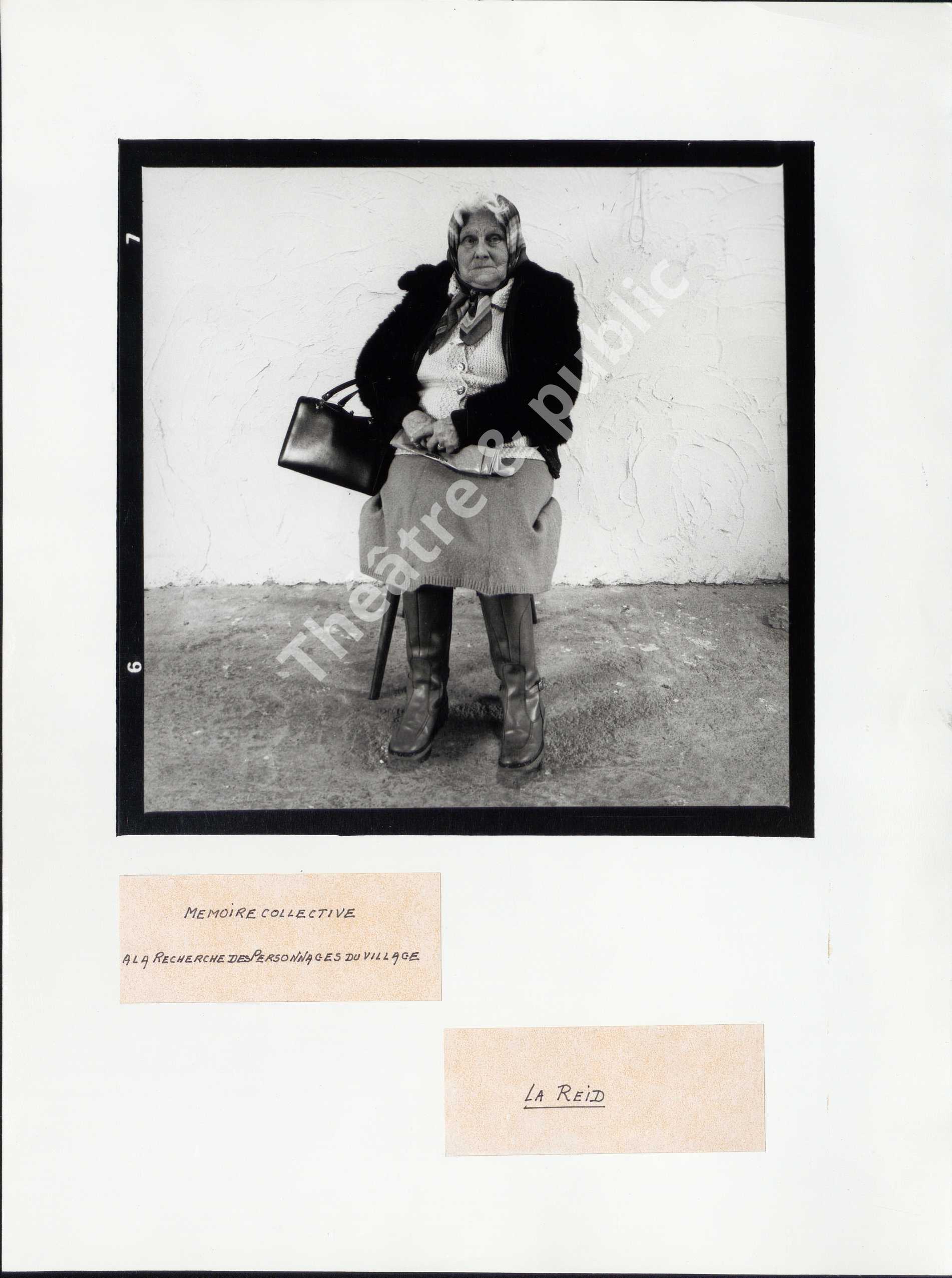 En préparant une numérisation, l’équipe tombe sur une farde de grandes feuilles A3 retraçant une expérience pédagogique menée en 1982 dans un village de la région liégeoise. À l’intérieur : des portraits noirs et blancs, tirages originaux en 6×6, représentant les habitant·es du village. Ces images avaient servi de matériau aux comédiens pour approcher le réel des publics devant lesquels ils allaient jouer. Lors des représentations, elles étaient exposées aux côtés de photographies personnelles prêtées par les habitants, capturant un moment charnière dans la transformation de la campagne liégeoise.