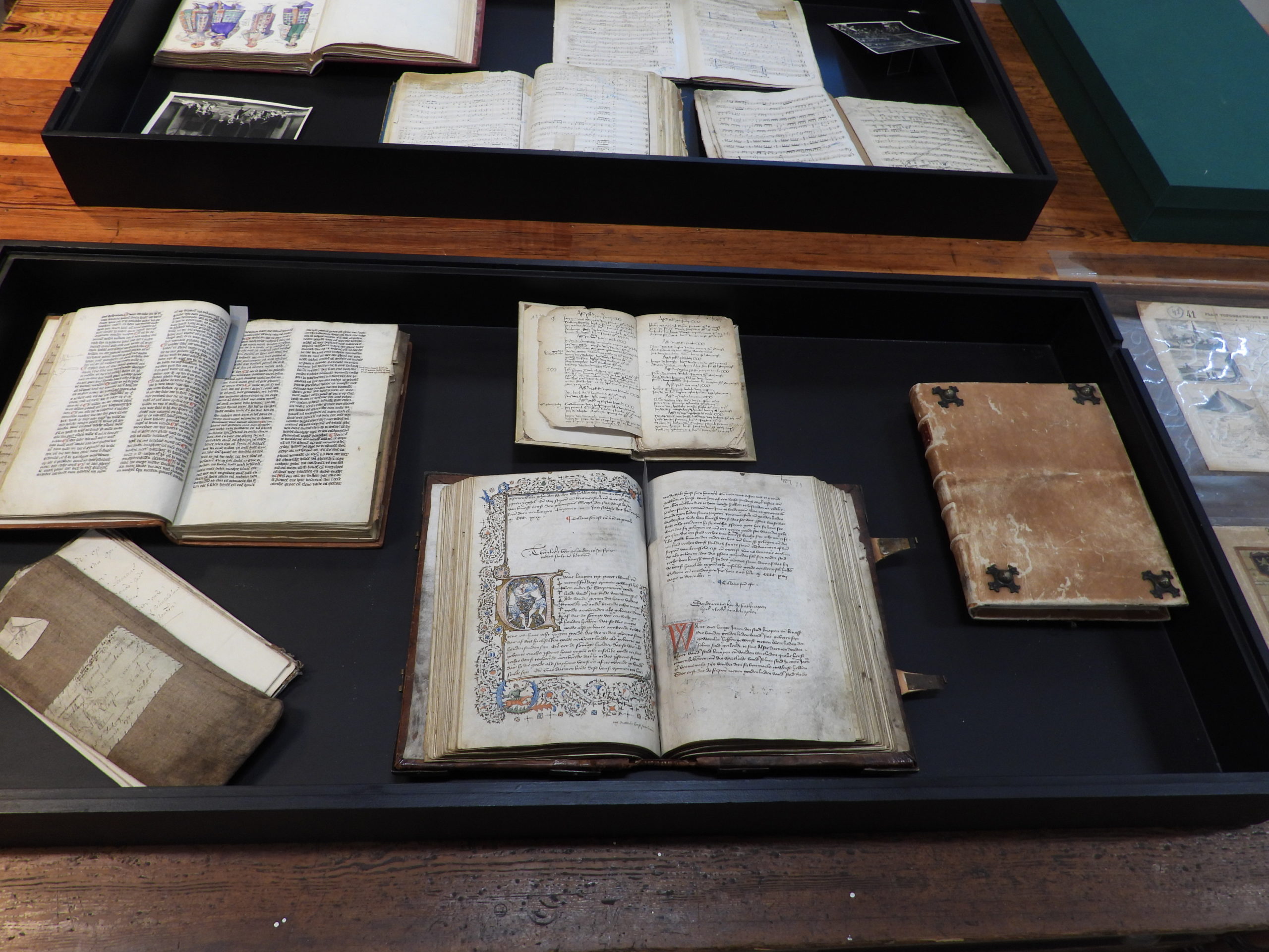 Outre la visite guidée, Hélène avait pris le temps de réaliser une exposition de quelques documents issus des fonds et collections de son service. Le choix des pièces et leur valorisation demandent un travail important, qu’Hélène et Iga ne pourraient pas fournir à tout moment, compte tenu des tâches prioritaires à honorer quotidiennement au sein de leur service respectif.