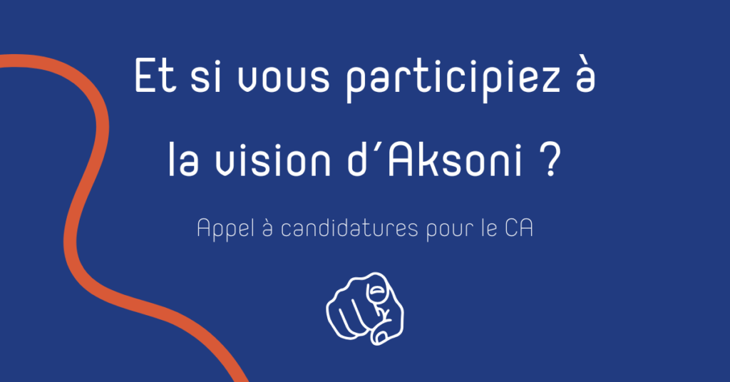 À l’occasion de notre Assemblée Générale du 22 mai prochain, nous ouvrons les candidatures pour rejoindre le Conseil d’Administration d’Aksoni.
